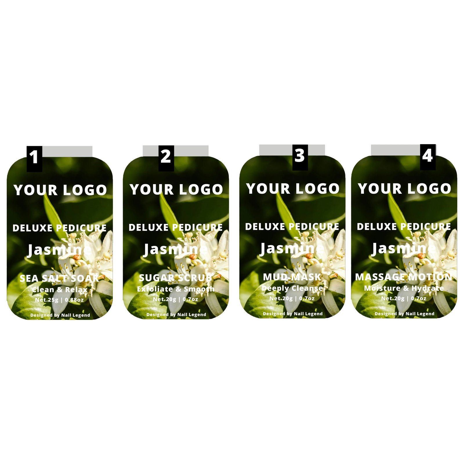 4 in 1 Deluxe Vegan Pedicure Kit Box Professional Spa Use with Salt Soak Sugar Scrub Mud — OEM & Private Label Wholesale