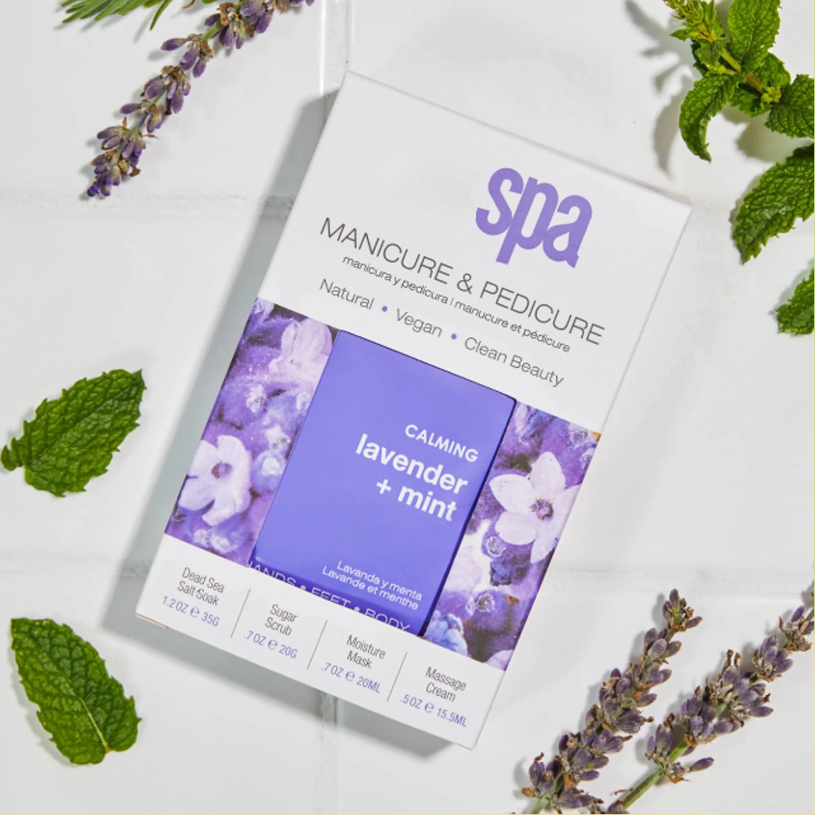 4 in 1 Manicure Pedicure Kit Lavender Calming Spa Set Exfoliator Moisturizer Chemical