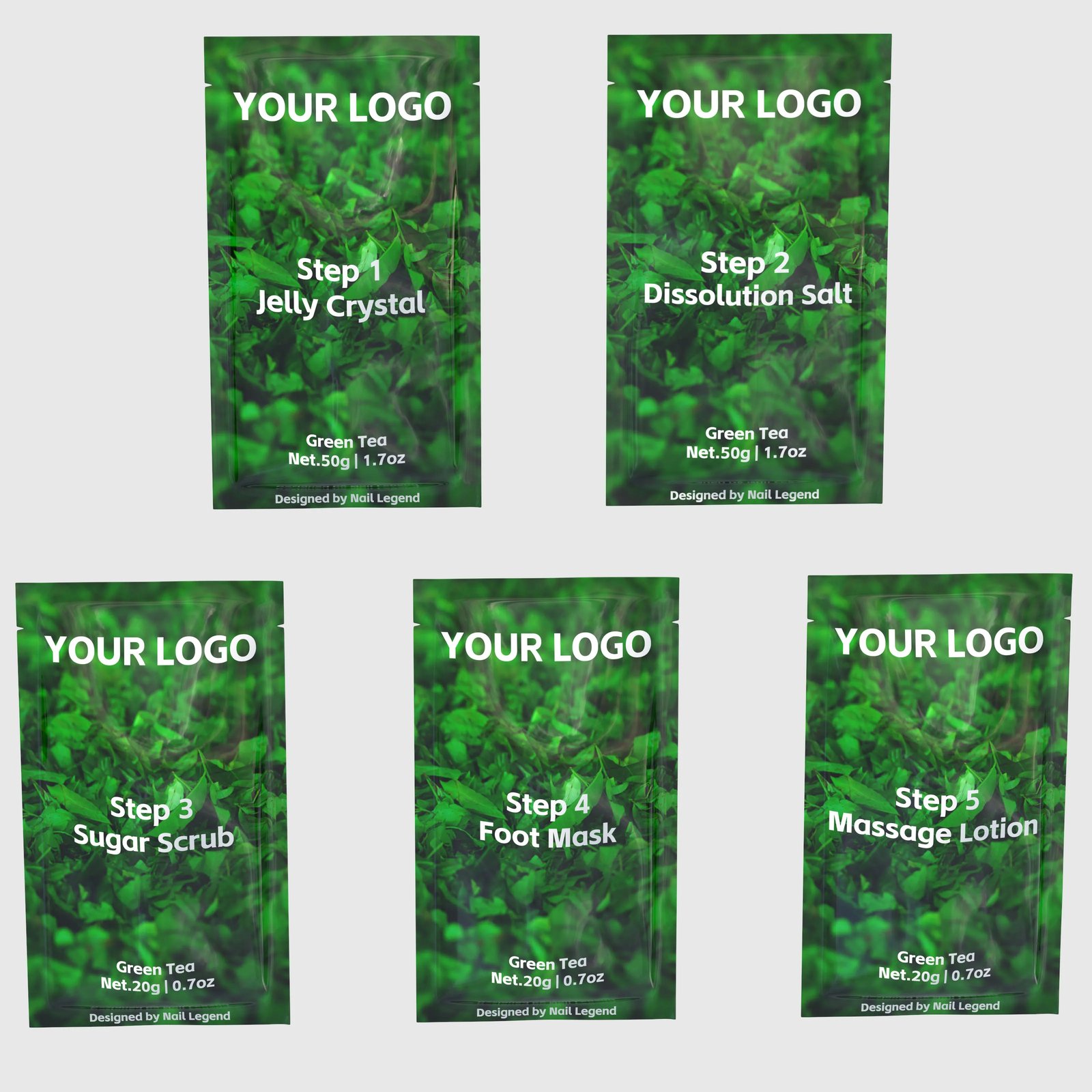 Organic Green Tea 5 1 Jelly Spa Pedicure Kit Crystal Dissolution Salt Sugar Scrub Foot — OEM & Private Label Wholesale