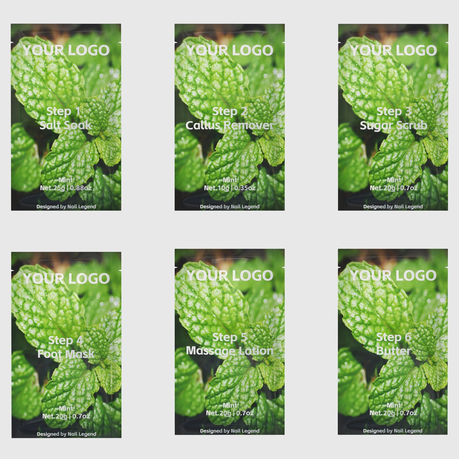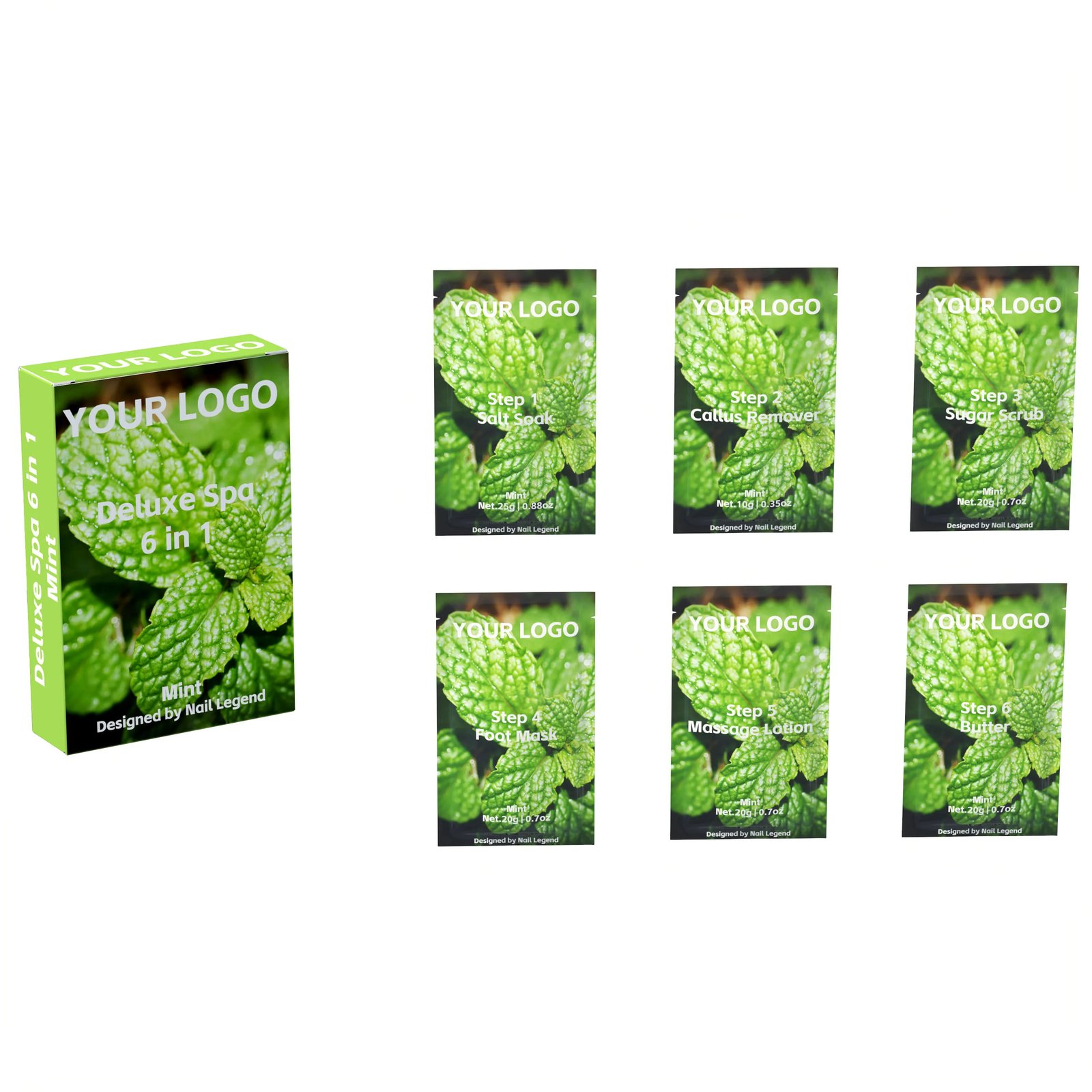 Mint Deluxe Spa 6-in-1 Herbal Vegan Professional Use Salt Soak Callus Remover Sugar Scrub — OEM & Private Label Wholesale