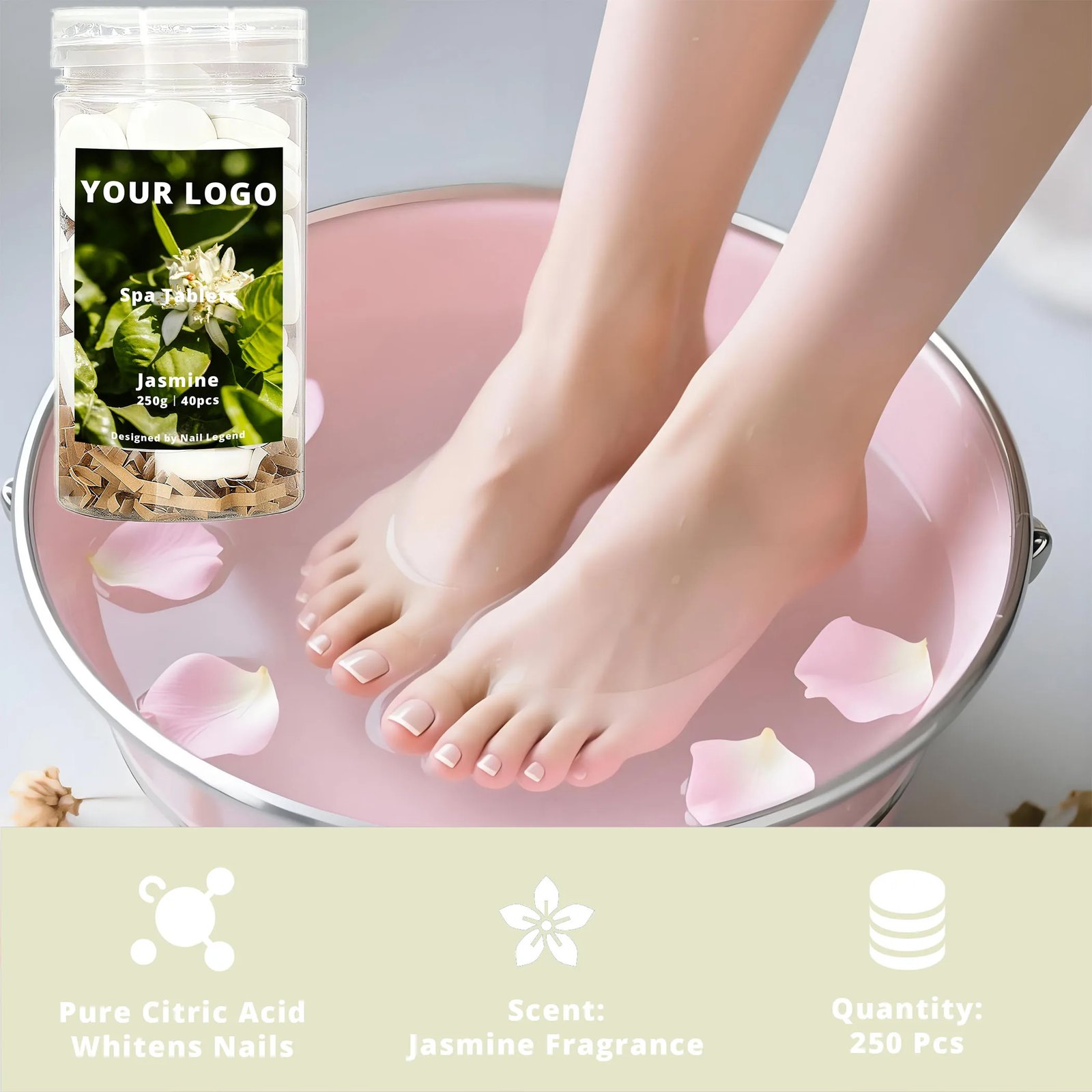 Nail Legend Jasmine Spa Tablets 250g OBM Quick-Dissolve Natural Organic Strong Scents for — OEM & Private Label Wholesale