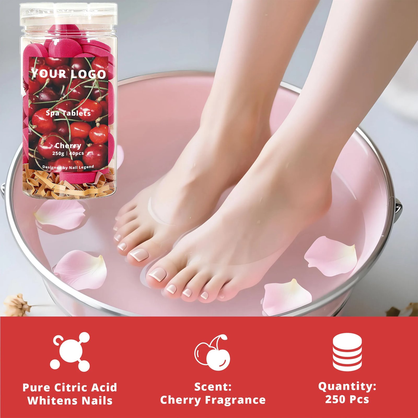 Organic Cherry Spa Tablets 250g Quick-Dissolve Strong Scents for Salon Manicure Pedicure — OEM & Private Label Wholesale